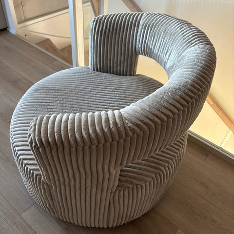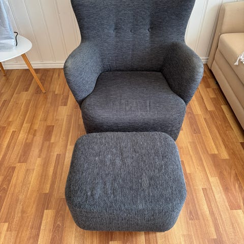 Lenestol med fotskammel grå tekstil