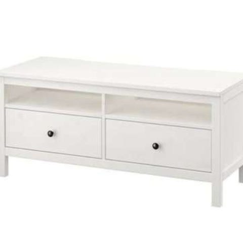 Hemnes tv-benk. Brukt. Har noen riper. Trenger litt maling. Skuffer er helt fine og går fint inn og ut.