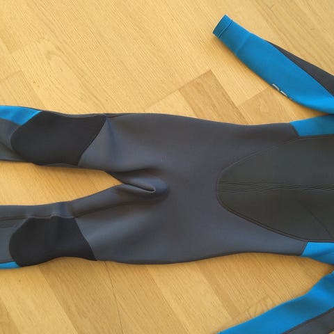 Drakten er laget i neopren og kommer i blå farge med mørke felt på brystet og kontrastsømmer. Glidelås bak for enklere av- og påkledning. Egnet til bruk i vannaktiviteter som bading, surfing eller andre vannsporter der man ønsker ekstra isolasjon og beskyttelse mot kaldt vann.