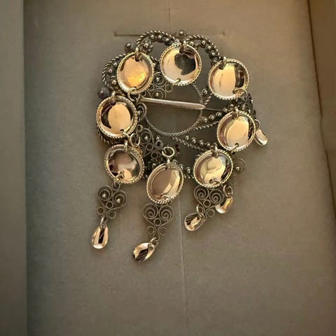 Sylvsmidja bunadssølje i sølv for dame. Brukt som bringesølje.