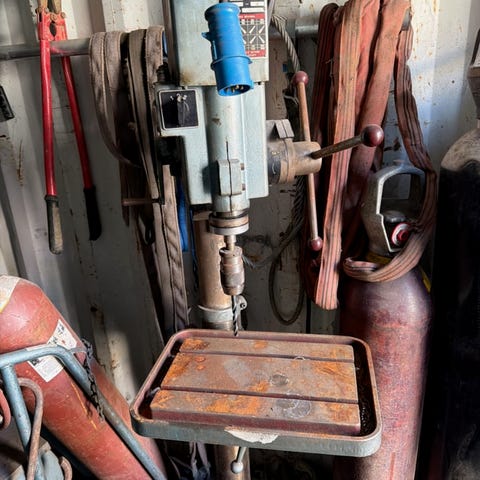 Selger en FERAX søyleborrmaskin, med som bordplate som kan vinkles. Arm til bord har knekt selges derfor rimelig. Strøm inntak er 3-fas.