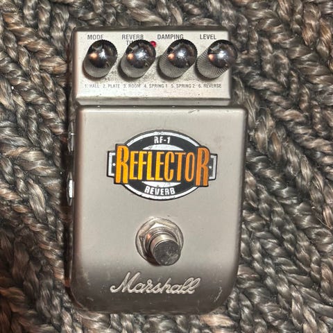 Ingen lapp eller info å finne på boksen, men google mener det kan være en PEDL10009. Kobles til Marshall-forsterkere (kanskje også andre?) for å slå av eller på reverb, samt bytte kanal. Har ikke noen forsterker selv som denne kan passe til så jeg vet ikke om den fungerer, så jeg selger den billig. Kjøpes som den er, frakt er inkludert.
