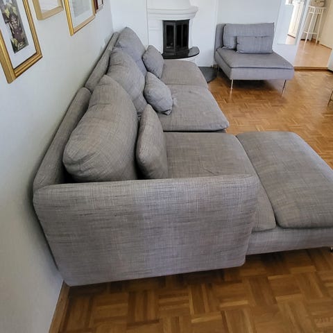 Sofaen er pent brukt og fremstår i god stand. Ingen kjente skader, kun normal bruksslitasje. Trekket kan tas av og vaskes.