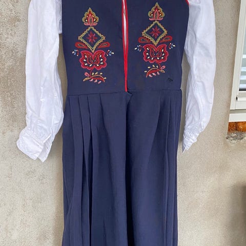 Veldig fin, svært lite brukt bunad med skjorte og Cape. Stor sølje, Martha sølja/knappen, mansjettknapper, ring og ørepynt. Lengde til dame på 173 cm, kan legges opp evt. Slank modell 🇧🇻