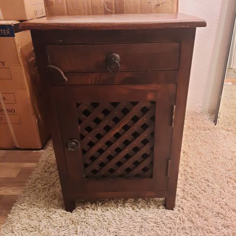 Pent nattbord, heltre eik.