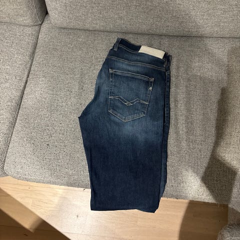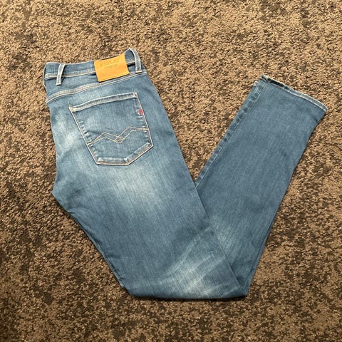 ✅ 1x Replay Anbass Slim Fit (mørkeblå med beige patch)
