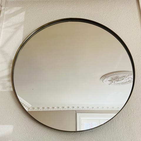 Rundt speil med tynn gullramme Ø60 cm - pent brukt