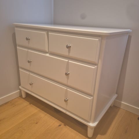 Pent hvit kommode.
