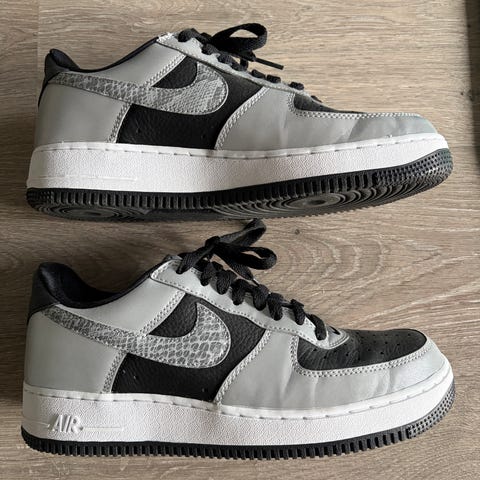 Nike Air Force 1 i størrelse 44. Bestilt i custom farger. Skoene er brukt og har slitasje deretter. Litt mer slitt i venstre (se bilde).