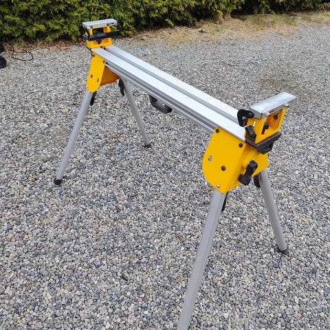 DeWalt DW777 kapp- og gjærsag med tilhørende sagbord.
