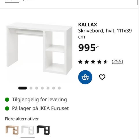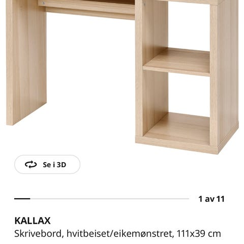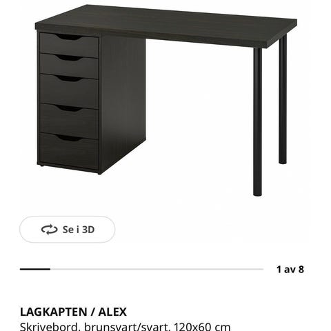 Jeg selger denne skrivepulten i svart. Romslig med store hyller og god skriveplass. Nesten ubrukt. Må hentes selv.