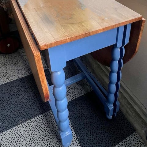 Trenger lett maling selve bordflaten. Vakre farger i lys-og mørk grå.