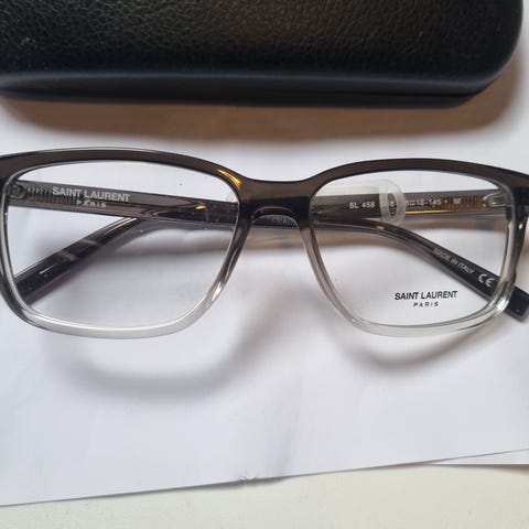 Saint Laurent brilleinnfatning unisex i svart acetat og nylon. Rektangulær/kvadratisk form med Saint Laurent-logo på stengene. Innfatningen er kompatibel med styrkeglass. Produsert i Italia. Passer for unisex-bruk.