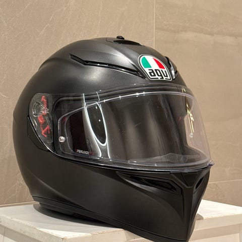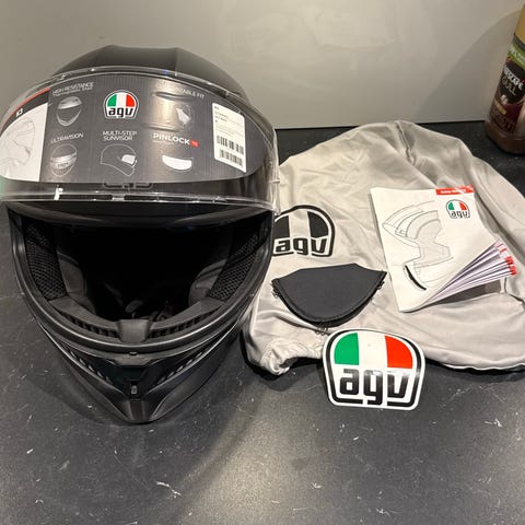 Selger min AGV K1 S hjelm i størrelsen L (59-60). Hjelmen er svært lite brukt, og fremstår som hel og pen. Selges da den er en størrelse for stor for meg. Kommer med 1.stk klart- og 1.stk sotet visir samt dust-bag.