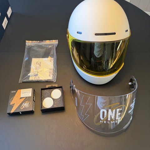 Noe små-riper, men d er nesten umulig å unngå på en blank-svart hjelm.