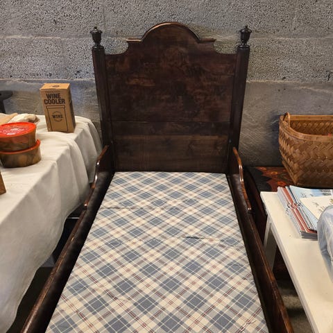 Gammel seng som jeg har pusset og malt. Brukt som gjesteseng og er masse bruk igjen.