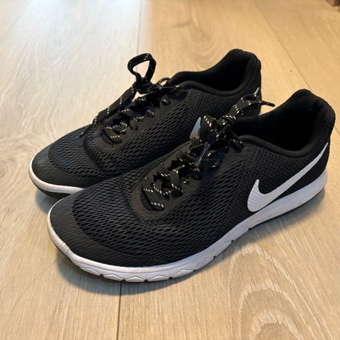Nike løpesko i svart farge i størrelse 38. Skoene har overdel i tekstil/mesh med snøring foran. Yttersålen har mønster for grep ved løping på hardt underlag. Modellen er egnet til løping og annen trening der det er behov for lette joggesko med demping.