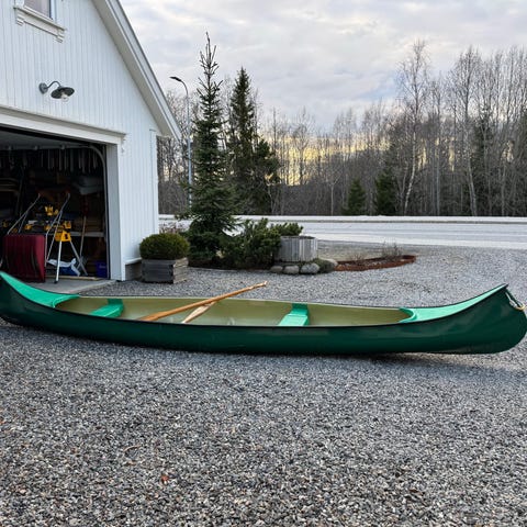 Kano i gul farge. Modellen har flere sitteplasser og er egnet for bruk på innsjøer og rolige elver. Skroget er utformet for stabilitet og god lastekapasitet. Passer til fritidsbruk som padling, turer og transport på vann.