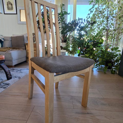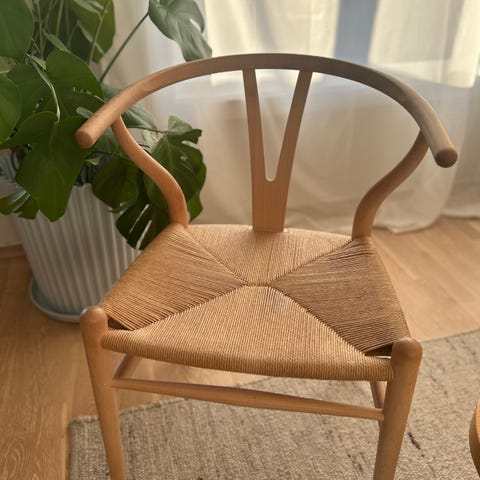 2 stk clara spisestuestoler fra sleepo i eik med flettet sete. Ligner y-stolen. 2595,- ny pris per stk.