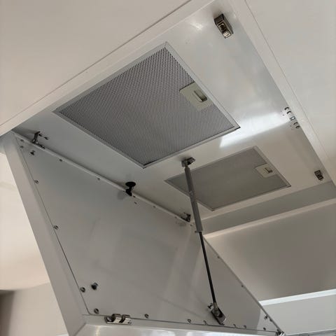Uttrekkbar kjøkkenhette/ventilator fra Whirlpool i stål for innbygging i overskap.