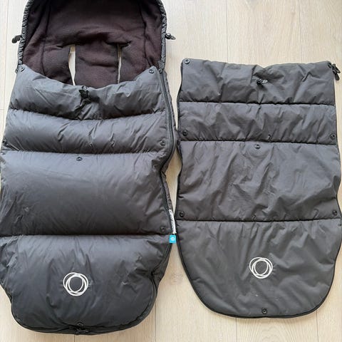 Bugaboo vognpose i svart selges rimelig da den glidelåsen på den ene ikke fungerer som den skal, ellers i god stand. Både vinterposen i dun og vårposen følger med.