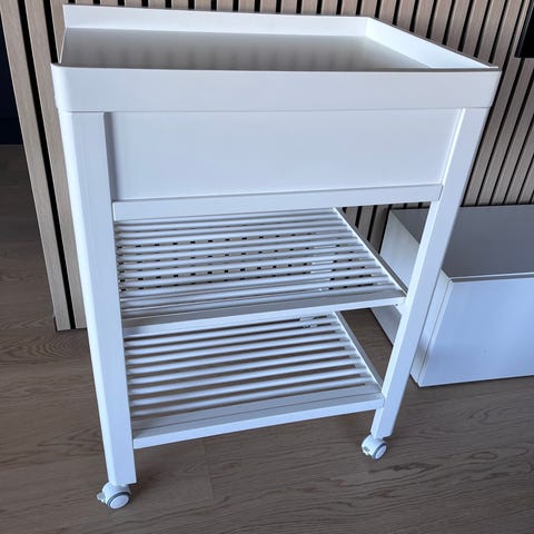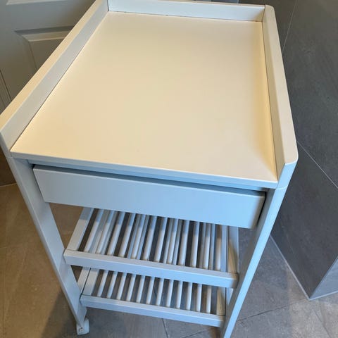 Stellebordet har passer til de fleste stellematter da den er åpen i enden med høye kanter rundt. Praktisk med en skuff under stelleflaten og to åpne hyller med lameller for oppbevaring av bleier, klær og utstyr. Bordet står på hjul (med bremser), noe som gjør det mulig å flytte det ved behov.