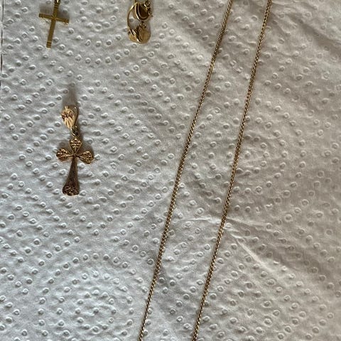 Tilsammen 14 karat: 0,663 gram. 18 karat 0,269 gram. Selges samlet.