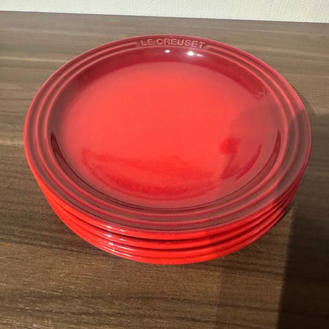 Le Creuset tallerkener i rødt stentøy. 27 cm.