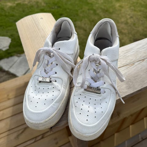 Nike air force. Str 37,5. Godt brukt, og har noen hull bak ved helen. Kan lett tettes igjen med kippekapper evt. Ellers fine og tåler en sesong eller to til :)