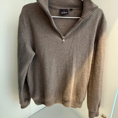 Oscar Jacobson genser for herre i størrelse M. Genseren er grå og laget i ull og kashmir.