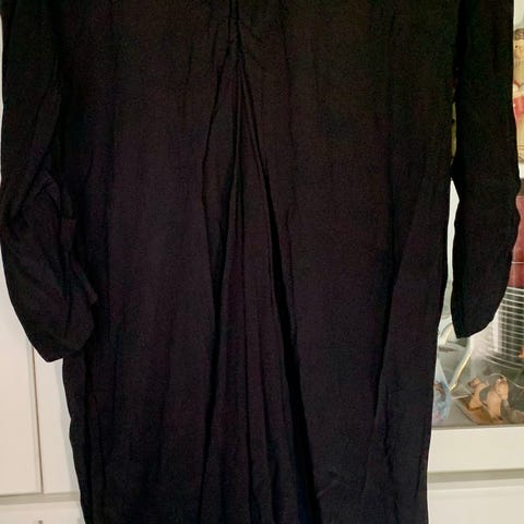 KO:KO Celine hverdagskjole for dame i størrelse 50. Kjolen er svart og laget i en viskoseblanding med elastan for mykhet og bevegelighet. Modellen har kortere ermer og kneppet front, med lett utsvingt skjørt. Lommer i sidene. Passer som hverdagskjole og kan brukes både alene og med strømpebukse eller leggings.