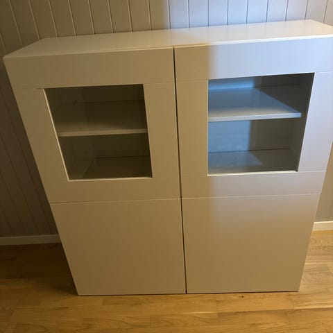 Selger 2 stk pent brukte Bestå vitrineskap med lys.
