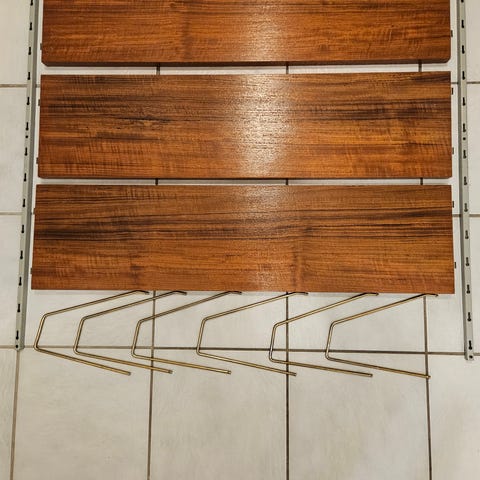Teak reol/ hyllesystem. Veggen av Erling T. Scheen