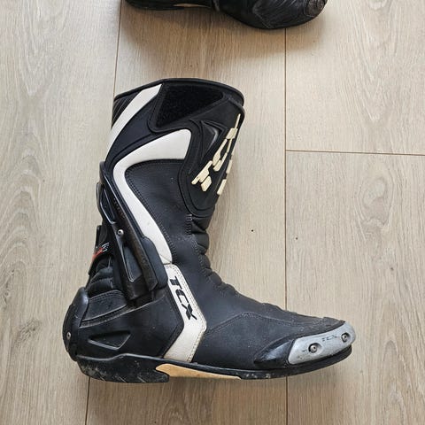 TCX R-S2 mc-støvler. Sporty racingmodell med høy skaftkonstruksjon og forsterkninger i ankel, hæl og tå. Glidelås og borrelås på innsiden