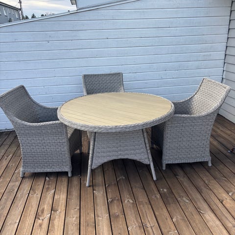 Oslo hagebord er et rundt utebord i grå utførelse. Bordet har en massiv sylinderformet sokkel og en rund bordplate som gir stabilitet. Det er egnet som bord i hage, på terrasse eller balkong. Materialet fremstår som et robust utendørsmateriale tilpasset bruk ute i sesongen.