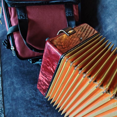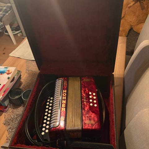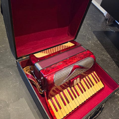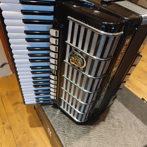 Weltmeister trekkspill i blå utførelse. Instrumentet har pianotangenter på høyre side og bassknapper på venstre side. Leveres med skulderreimer og bæreveske/trekkspillbag som gir enkel transport og oppbevaring. Egnet for bruk i ulike musikksjangre og øving hjemme eller til opptredener.