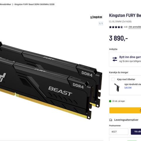 Selger et meget pent brukt sett med Kingston FURY Beast RGB DDR5-minne. Settet fungerer feilfritt og leverer topp ytelse for både gaming og tunge arbeidsoppgaver.