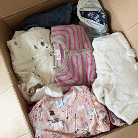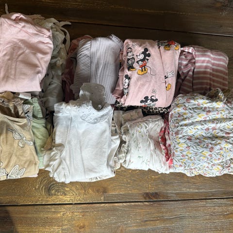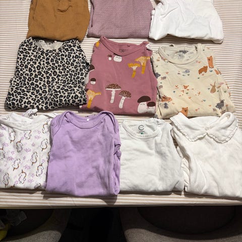 Selger klespakke etter datteren min, kun brukt av henne. Ingen flekker som jeg kan se. Klær fra newbie, Lindex og HM. 8 sett, 10 bukser, 10 bodyer, og en genser.