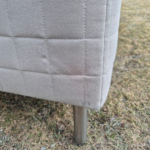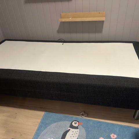 Obs. Det er en planke i fotenden som er knekt. Men ingen problemer å omorganisere to andre planker for å ta unna presset uten at det påvirker bruksegenskapene.