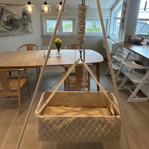 Pent brukt vugge med gulvstativ selges.