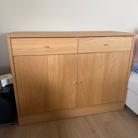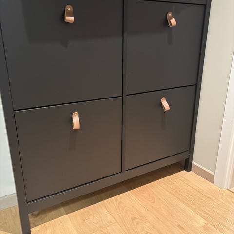 Pent brukt skoskap i eikefiner