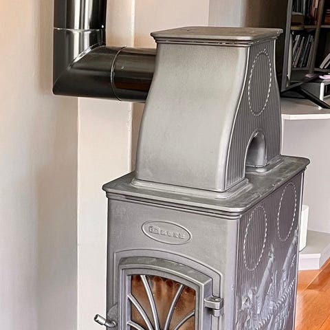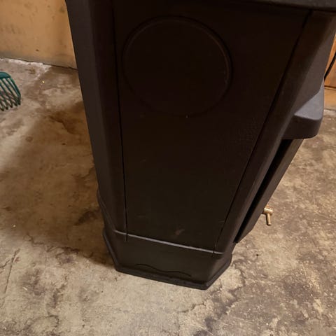 Dovre vedovn med etasje, pent brukt, ca 20år gammel, på sidene utformet med motiv fra Bukkene Bruse. Sprekk i innvendige brennplater på sidene, pris på nye brennplater er kr 2000. Ovnen må hentes.