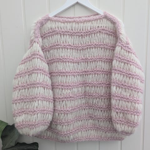 En rosa genser, myk og lett.