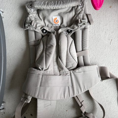 Ergobaby bæreselle i svart farge. Bæreselen har polstrede skulderstropper og bred hoftereim med borrelås og spenne for god støtte. Justerbare stropper gjør at den kan tilpasses ulike brukere. Egnet til å bære barn tett inntil kroppen, både foran og på ryggen, avhengig av modellens innstillinger og anbefalinger fra produsent. Stoffmateriale er mykt og robust tekstil som gir støtte rundt barnets rygg og hofter. Kan brukes både med barnet fremovervendt og mot kropp.