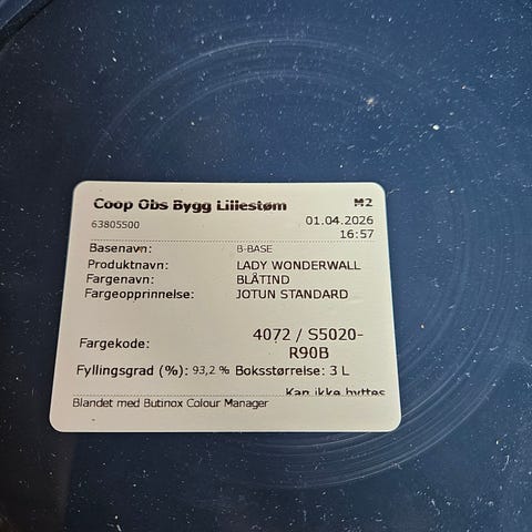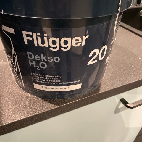 Flügger H2O maling selges. Farge: Letthet. Brukt bare en liten del. Kjøpt i 2026 på Flügger farve Grünerløkka.