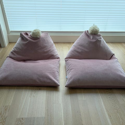Pent brukt sakkosekk av merket Fatboy. Fargen er lys rosa.