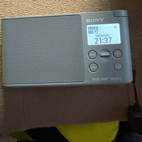Pen Sony DAB+ bordradio i lyst tre og sølvfarge. Radioen har digital DAB+ og FM-mottak, display som viser kanal- og sanginformasjon, samt innebygd høyttaler i front. Egner seg som bordradio i stue, kjøkken eller soverom. Ca 27 cm bred og 14 cm høy. Sony XDR-S16DBP