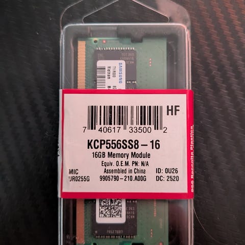 Hastighet er 3200MT/s CL22. Kjøpt som demovare på Komplett. Intel XMP