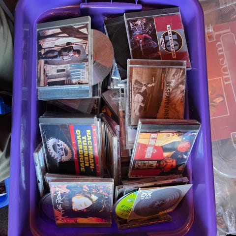 Bærepose med diverse DVD-filmer selges for 10 kr pr stk