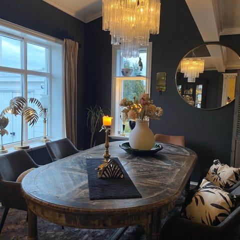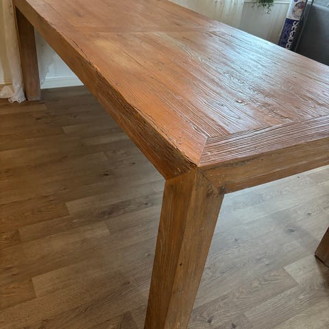 Flott spisebord fra Home & Cottage i heltre hvitoljet eik, kryssben. Modellen heter Cross.